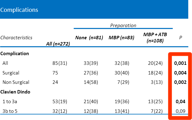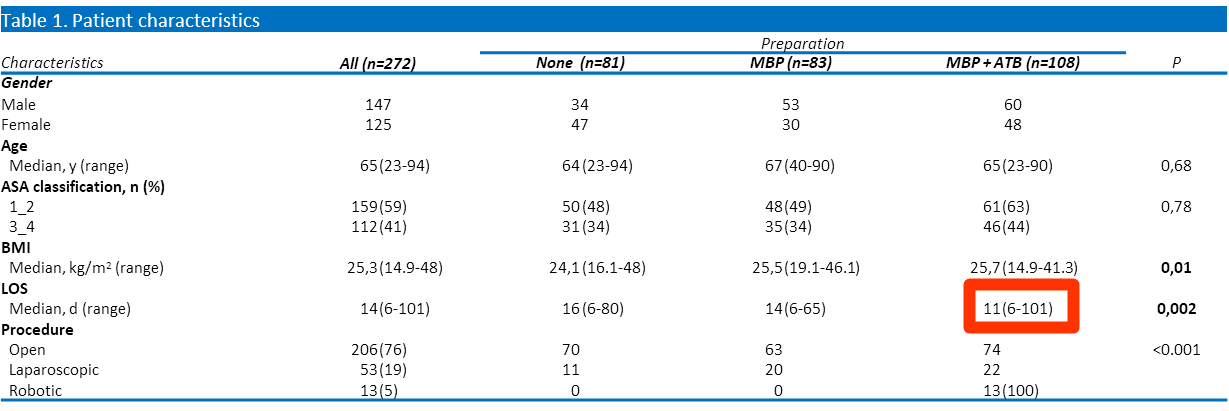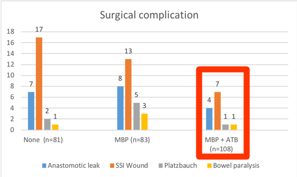 In unserer Kohorte reduzierte die Kombination präoperative Darmvorbereitung und orale Antibiotika, die postoperative chirurgische und nicht-operative Komplikationen nach elektiven kolorektalen Eingriffen signifikant, und war mit einer kürzeren Krankenhausverweildauer verbunden.
